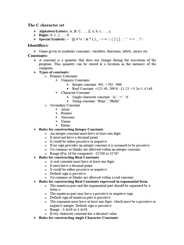 o If no sign precedes an integer constant it is assumed to be possitive.