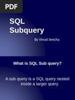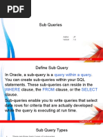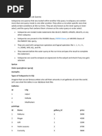 aggregation, and data retrieval. Below are the main types of subqueries, along with SQL queries