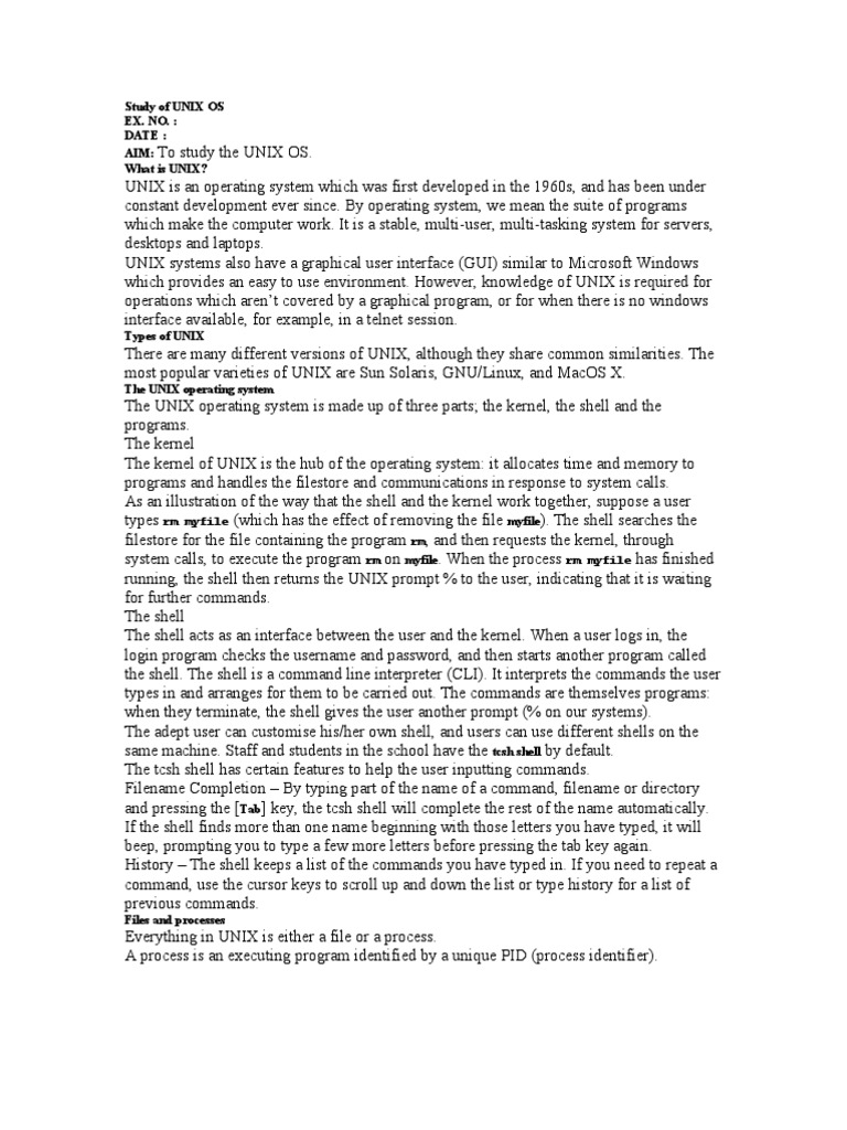 Study of Unix Os