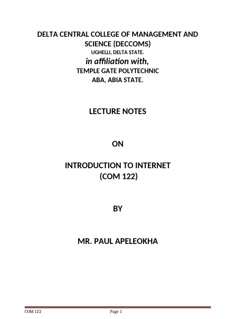 DELTA CENTRAL COLLEGE OF MANAGEMENT AND