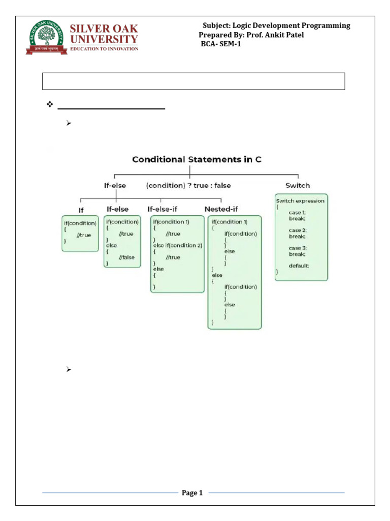 else, switch, etc. are used for decision-making purposes in C programs.