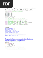 PROGRAM 12: That receives two numbers in a function and returns the results of all arithmetic operations (+,-,*,/,%) on