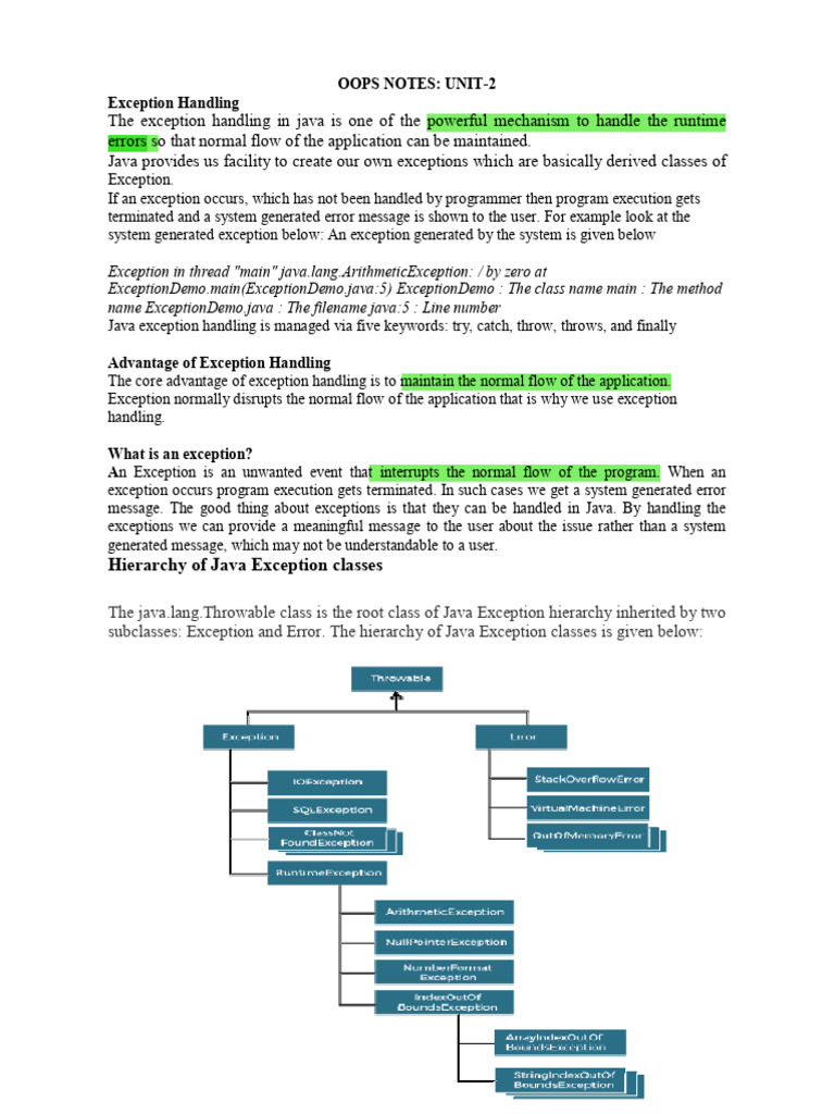subclasses: Exception and Error. The hierarchy of Java Exception classes is given below: