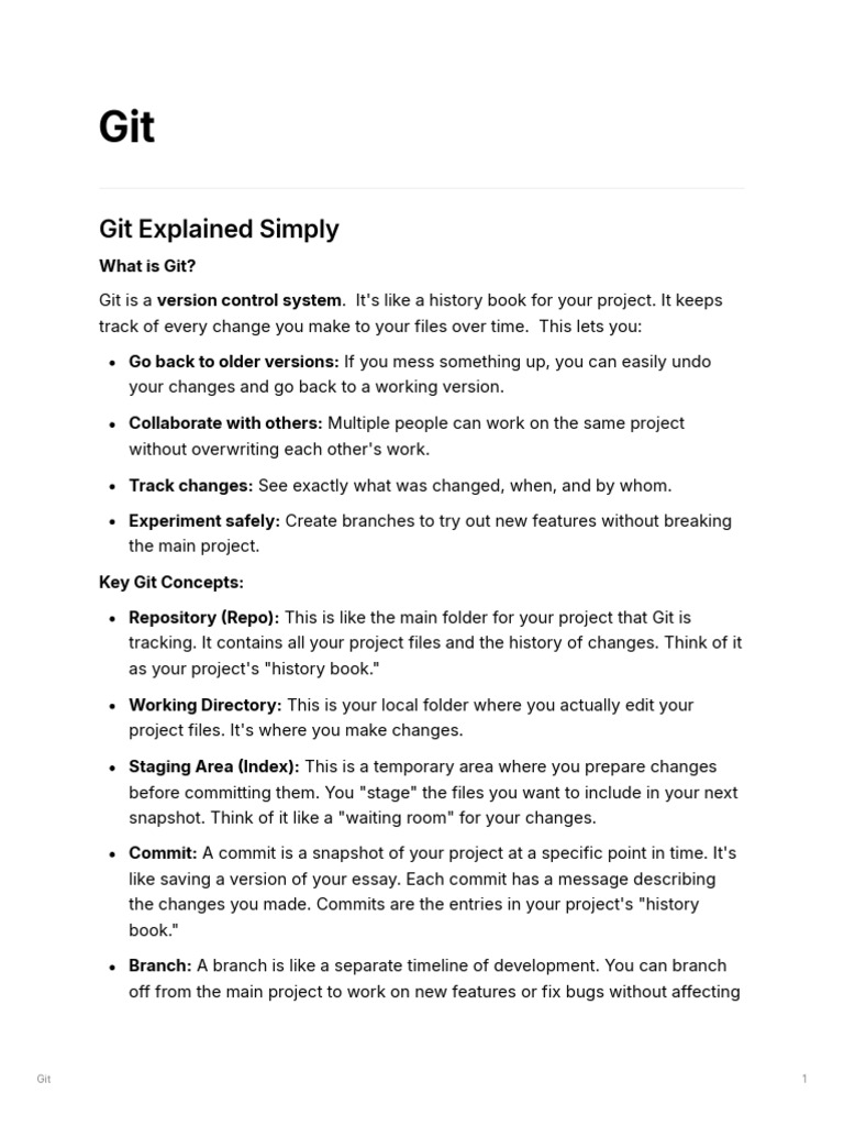 Commit: A commit is a snapshot of your project at a specific point in time. It's