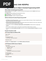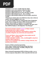 The document provides an overview of Object-Oriented Programming (OOP) concepts in Python, including classes, objects, methods, inheritance, polymorphism, encapsulation, and abstraction. It explains the differences between procedural and object-oriented programming, discusses constructors, and details various types of methods such as instance, class, and static methods. Additionally, it covers namespaces, encapsulation, and how to pass members between classes, emphasizing the importance of modular and reusable code.