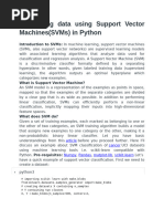 classes. In support vector machine we train a linear function to split those data. A line that should