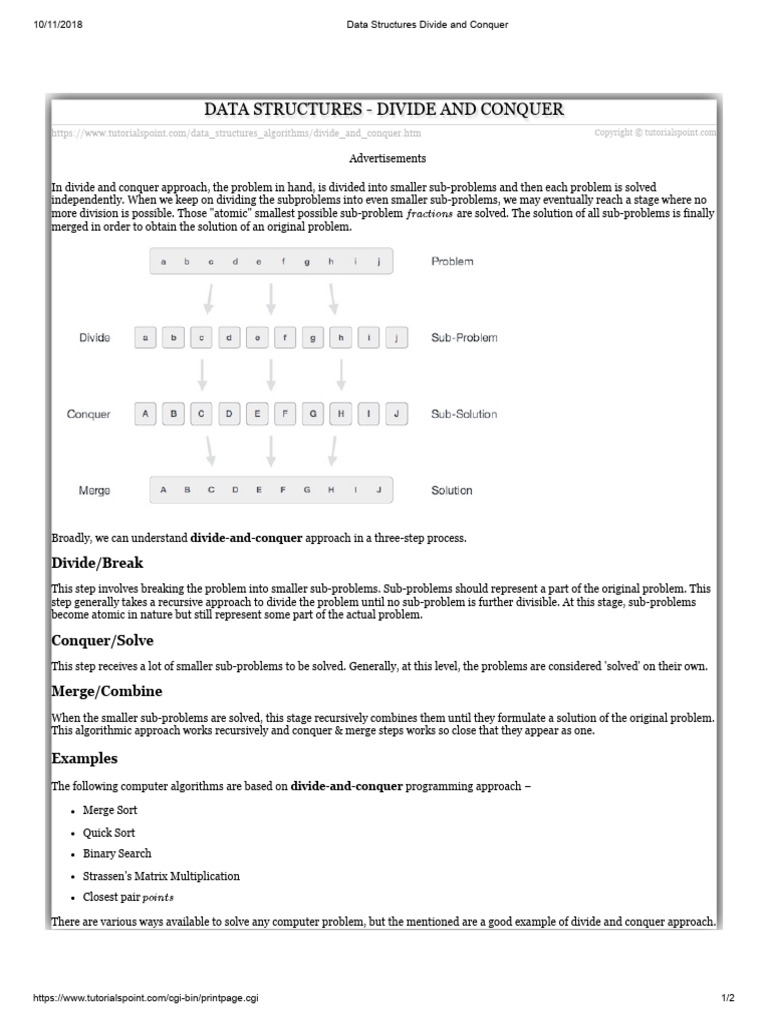 https://www.tutorialspoint.com/data_structures_algorithms/divide_and_conquer.htm Copyright © tutorialspoint.com