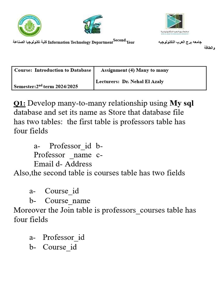كلية تكنولوجيا الصناعةInformation Technology DepartmentSecond Year جامعه برج العرب التكنولوجيه