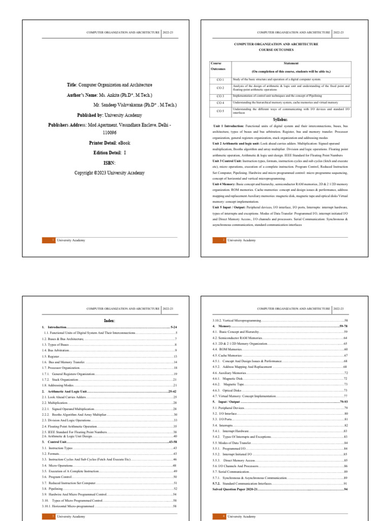 Publishers Address: Mod Apartment, Vasundhara Enclave, Delhi - Unit 1 Introduction: Functional units of digital system and their interconnections, buses, bus