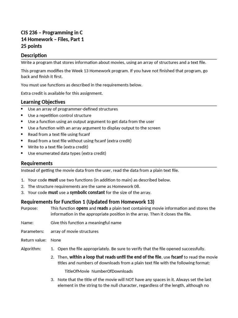 1. Create an array of movie structures of size 5. You can assume that there will not be more than 5