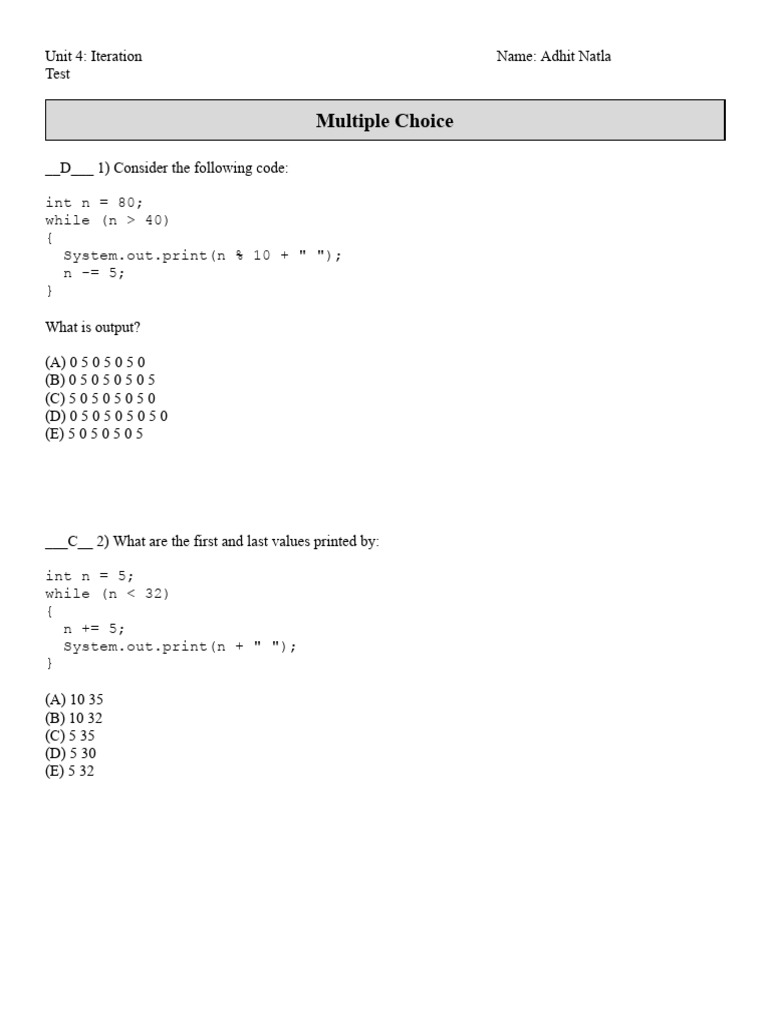 __C___ 6) Which of the following code segments will print all the multiples of 2 between 1 and 50 inclusive?
