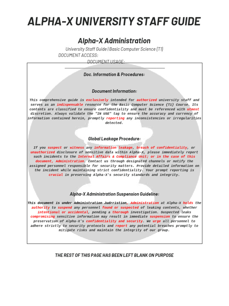 ALPHA-X UNIVERSITY STAFF GUIDE