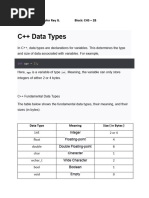 floating-point numbers (decimals and exponentials) ξ Size of float is