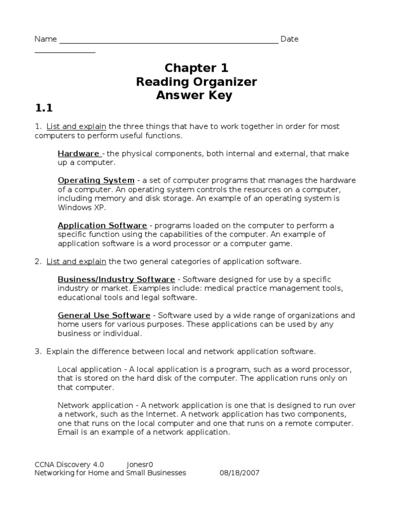 Chapter 1 Reading Organizer Answer Key