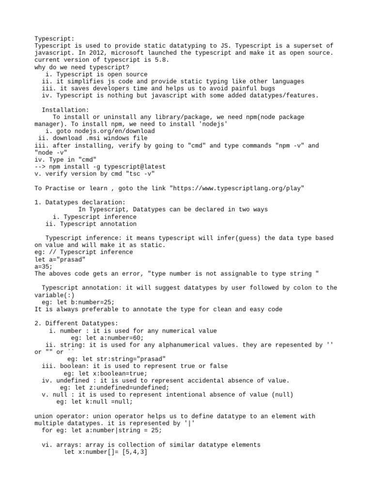 iv. Typescript is nothing but javascript with some added datatypes/features.