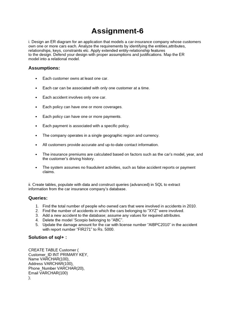 i. Design an ER diagram for an application that models a car-insurance company whose customers