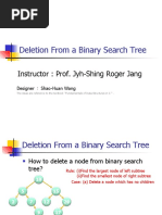 Deletion in BST Let x be a value to be deleted from the BST and let X denote the node containing the value x. Deletion of an element in a BST again uses the BST property in a critical way. When we delete the node X containing x, it would create a "void" that should be filled by a suitable existing node of the BST. There are two possible candidate nodes that can fill this void, in a way that the BST property is not violated: (1). Node containing highest valued element among all descendants of left child of X. (2). Node containing the lowest valued element among all the descendants of the right child of X. In case (1), the selected node will necessarily have a null right link which can be conveniently used in patching up the tree. In case (2), the selected node will necessarily have a null left link which can be used in patching up the tree. Figure 4.15 illustrates several scenarios for deletion in BSTs.