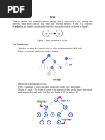 A directed edge refers to the link from the parent to the child (the arrows in the picture of the tree). The root node of a tree is the node with no parents. There is at most one root node in a rooted tree. A leaf node has no children. The depth of a node n is the length of the path from the root to the node. The set of all nodes at a given depth is sometimes called a level of the tree. The root node is at depth zero. The depth of a tree is the length of the path from the root to the deepest node in the tree. A (rooted) tree with only one node (the root) has a depth of zero. Siblings are nodes that share the same parent node. A node p is an ancestor of a node q if it exists on the path from the root to node q. The node q is then termed as a descendant of p. The size of a node is the number of descendants it has including itself. In-degree of a node is the number of edges arriving at that node. Out-degree of a node is the number of edges leaving that node. The root is the only node in the tree with In-degree = 0. All the leaf nodes have Out-degree = 0.