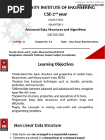 A prominent data structure used in many systems programming applications for representing and managing dynamic sets. Average case complexity of Search, Insert, and Delete Operations is O(log n), where n is the number of nodes in the tree. DEF: A binary tree in which the nodes are labeled with elements of an ordered dynamic set and the following BST property is satisfied: all elements stored in the left subtree of any node x are less than the element stored at x and all elements stored in the right subtree of x are greater than the element at x. An Example: Figure 4.14 shows a binary search tree. Notice that this tree is obtained by inserting the values 13, 3, 4, 12, 14, 10, 5, 1, 8, 2, 7, 9, 11, 6, 18 in that order, starting from an empty tree. Note that inorder traversal of a binary search tree always gives a sorted sequence of the values. This is a direct consequence of the BST property. This provides a way of sorting a given sequence of keys: first, create a BST with these keys and then do an inorder traversal of the BST so created. Note that the highest valued element in a BST can be found by traversing from the root in the right direction all along until a node with no right link is found (we can call that the rightmost element in the BST). The lowest valued element in a BST can be found by traversing from the root in the left direction all along until a node with no left link is found (we can call that the leftmost element in the BST). Search is straightforward in a BST. Start with the root and keep moving left or right using the BST property. If the key we are seeking is present, this search procedure will lead us to the key. If the key is not present, we end up in a null link. Insertion in a BST is also a straightforward operation. If we need to insert an element x, we first search for x. If x is present, there is nothing to do. If x is not present, then our search procedure ends in a null link. It is at this position of this null link that x will be included. If we repeatedly insert a sorted sequence of values to form a BST, we obtain a completely skewed BST. The height of such a tree is n - 1 if the tree has n nodes. Thus, the worst case complexity of searching or inserting an element into a BST having n nodes is O(n).