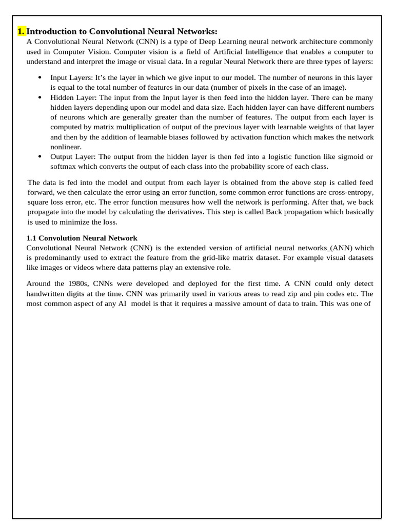 handwritten digits at the time. CNN was primarily used in various areas to read zip and pin codes etc. The