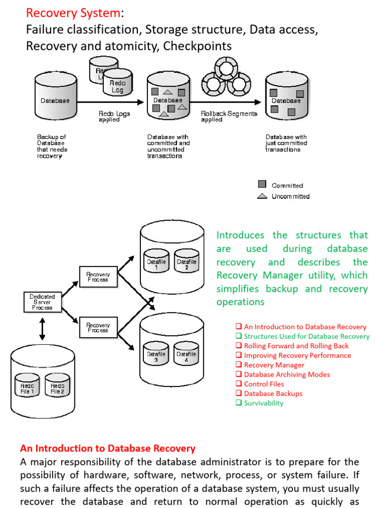 whether the online redo log or control file is multiplexed, as recommended. A multiplexed online