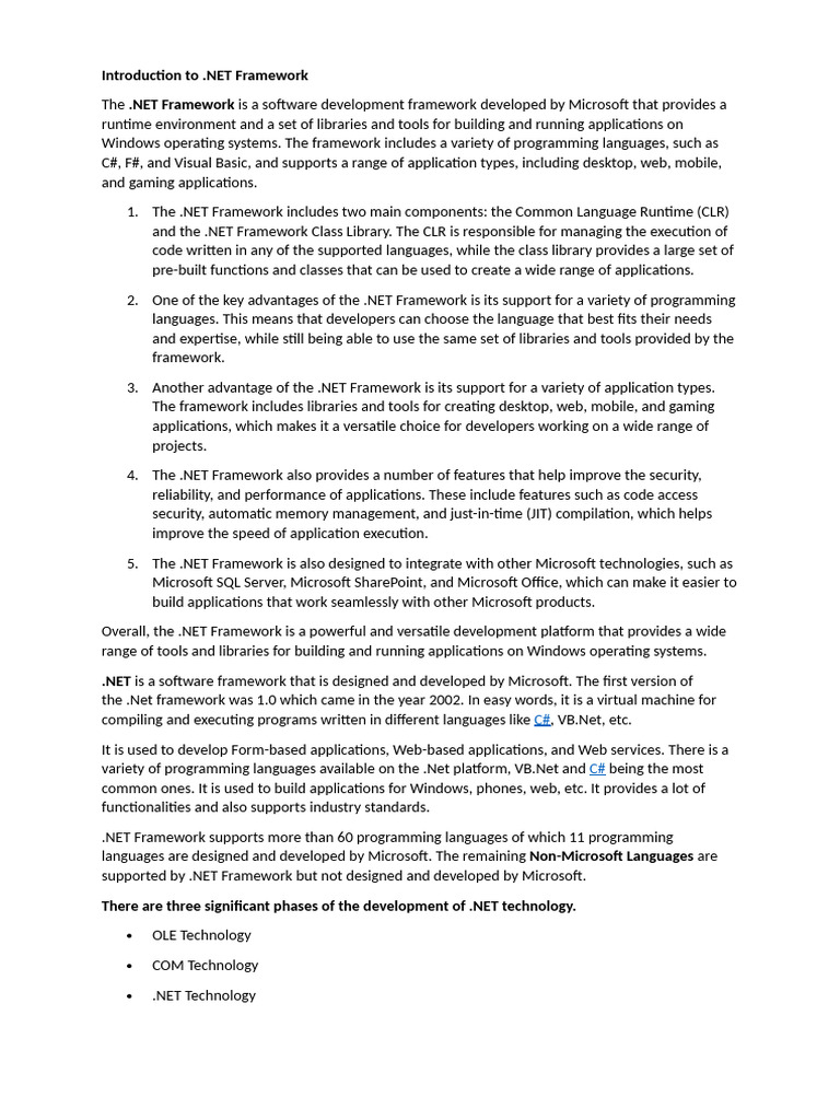 Overall, the .NET Framework is a powerful and versatile development platform that provides a wide