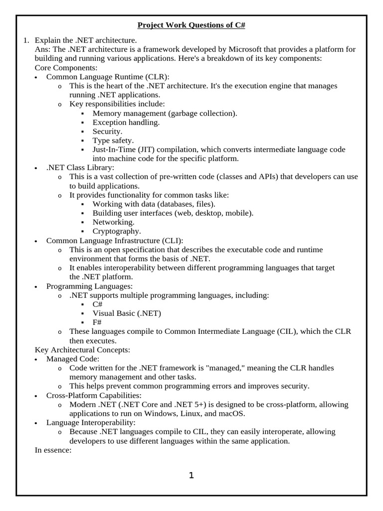 Ans: The .NET architecture is a framework developed by Microsoft that provides a platform for