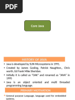 Java is a general-purpose and the most popular object-oriented programming language. Due to its simplicity and easy to learn features, it is the first choice of programmers today. The Java programming language is related to C and C++ but is organized rather differently, with many sources of bugs and complex features of C and C++ omitted and a few ideas from other languages included. In addition to the object-oriented features, it also provides features such as platform independence, security, multithreading, portability etc. which makes it well suited for the web and networked services, applications, platform-independent desktops, robotics and any other embedded devices. These features together make Java no longer just a programming language but a platform on its own. The Java platform has benefits for the end user as well as developers and support personnel. Java was developed by James Gosling and his colleagues at Sun Microsystems in the early 1990s. Unlike conventional languages which are generally designed either to be compiled to machine (native) code, or to be interpreted from source code at run time, Java applications are intended to be compiled to bytecode that can run on any Java Virtual Machine (JVM) regardless of the computer architecture. Today, Java not only infuses the Internet, but also is the invisible force behind many of the applications and devices that power our day-to-day lives. From mobile phones to handheld devices, games and navigation systems to e-business solutions, Java is everywhere!