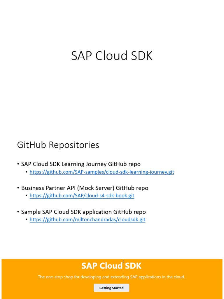 • https://github.com/SAP-samples/cloud-sdk-learning-journey.git