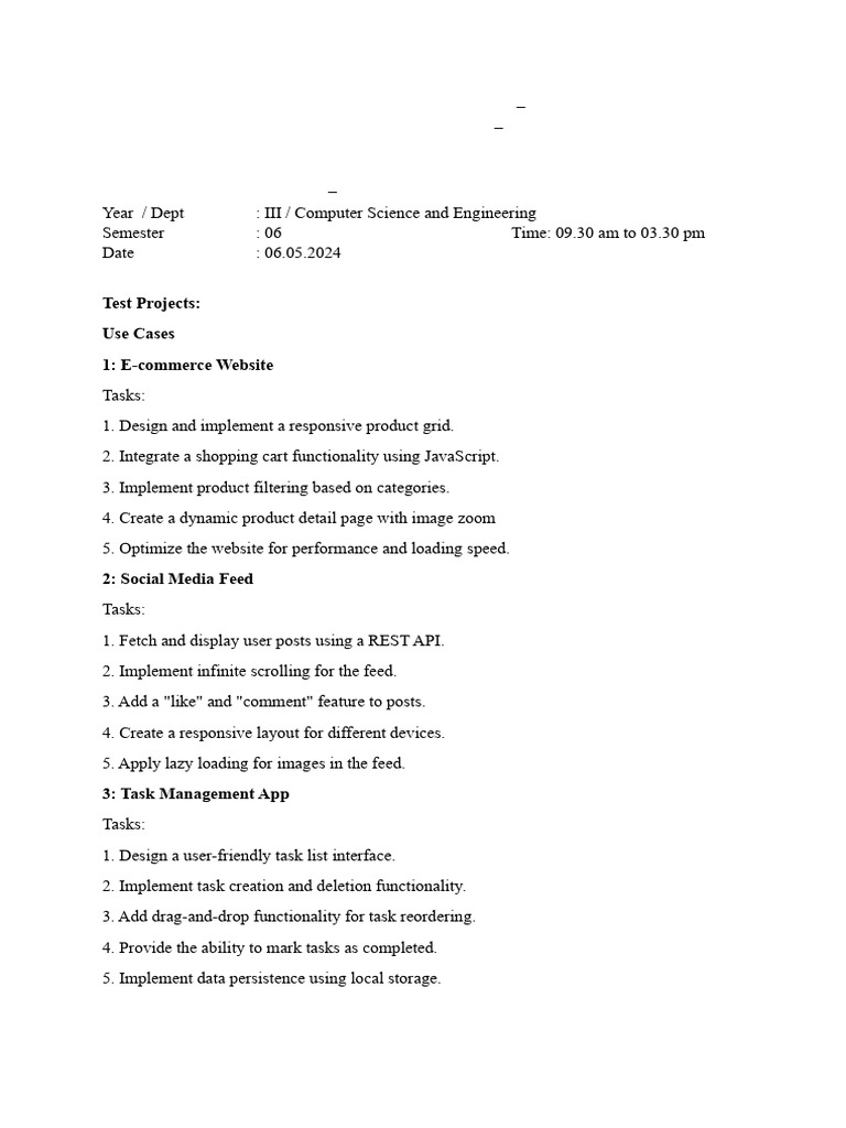 Semester : 06 Time: 09.30 am to 03.30 pm