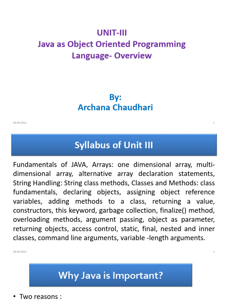 Fundamentals of JAVA, Arrays: one dimensional array, multi-