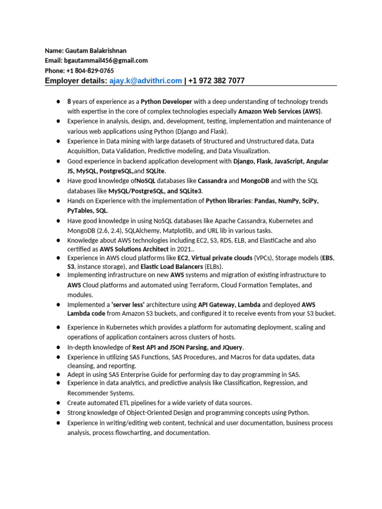 Employer details: ajay.k@advithri.com | +1 972 382 7077
