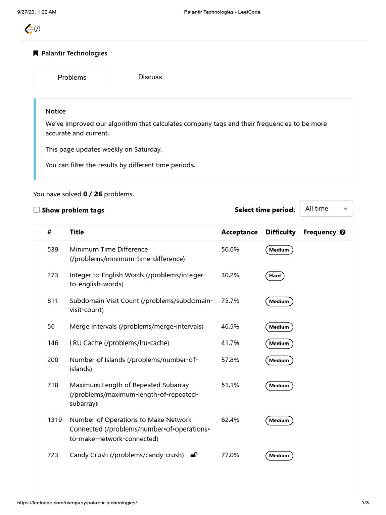 https://leetcode.com/company/palantir-technologies/ 1/3