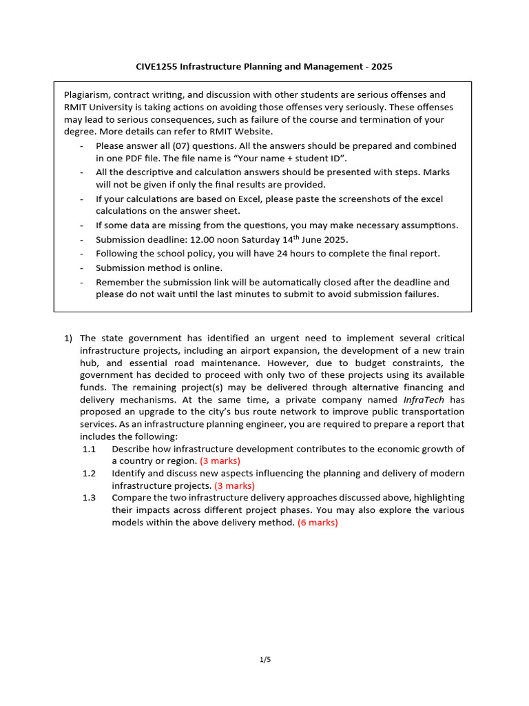 CIVE1255 Infrastructure Planning and Management - 2025
