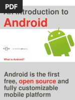 Android is a software stack for mobile devices that includes an operating system, middleware and key applications. The Android SDK provides the tools and APIs necessary to begin developing applications on the Android platform using the Java programming language.