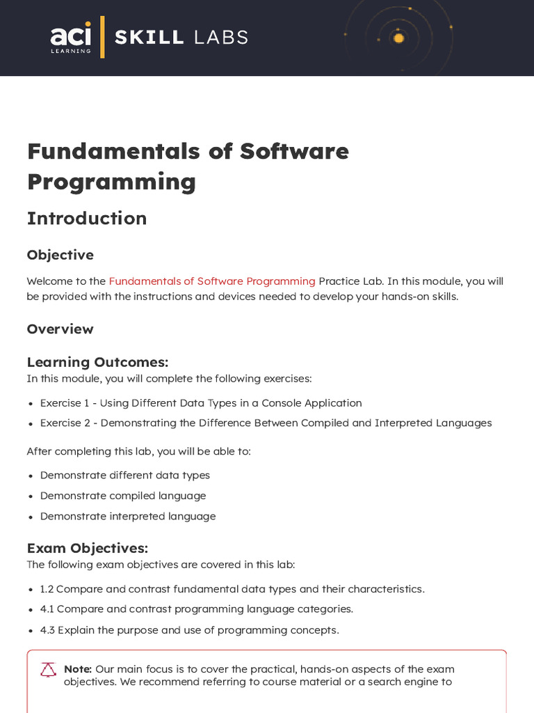 Welcome to the Fundamentals of Software Programming Practice Lab. In this module, you will