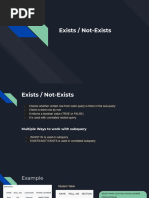 • EXISTS: Returns TRUE immediately upon finding