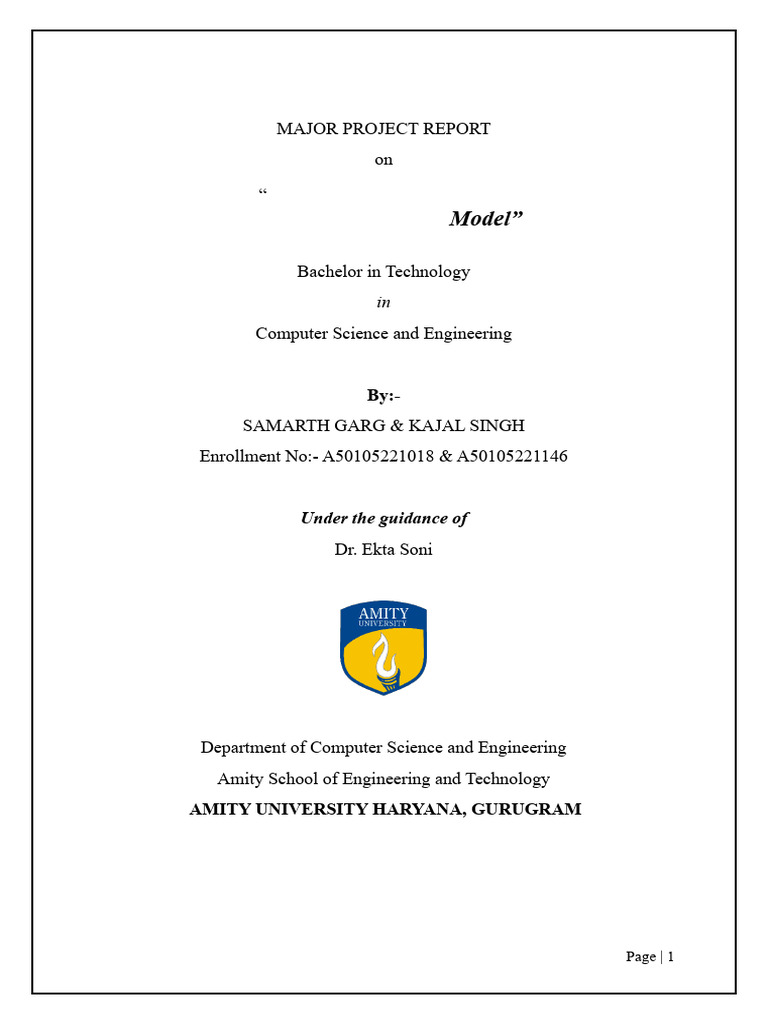 which is submitted by us to department of Computer Science & Engineering, Amity School of