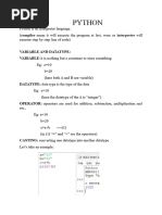 Python interpreter, interactive mode and script mode; variables, expressions, statements;