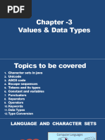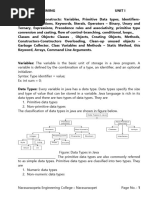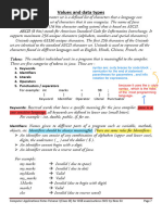 Character set, ASCII code, Unicode, Escape sequences, Tokens, Constants and Variables, Data types,