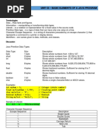 size in bits and bytes, Implicit type conversion and Explicit type conversion.