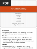 terminate statements. Other common separators in Java include parentheses (( and )), braces ({ and