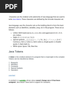 There are several types of tokens in Java, including: Keywords, Identifiers, Literals, Operators and