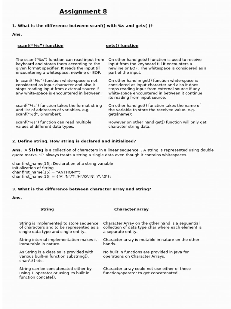 1. What is the difference between scanf() with %s and gets( )?