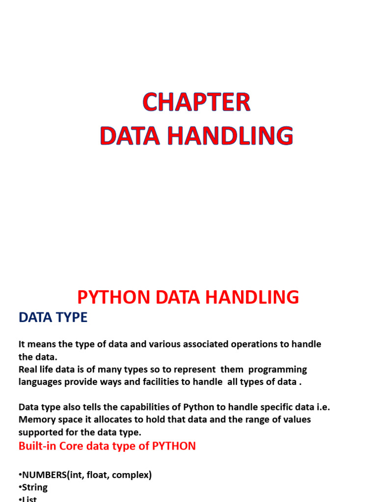 Data type also tells the capabilities of Python to handle specific data i.e.