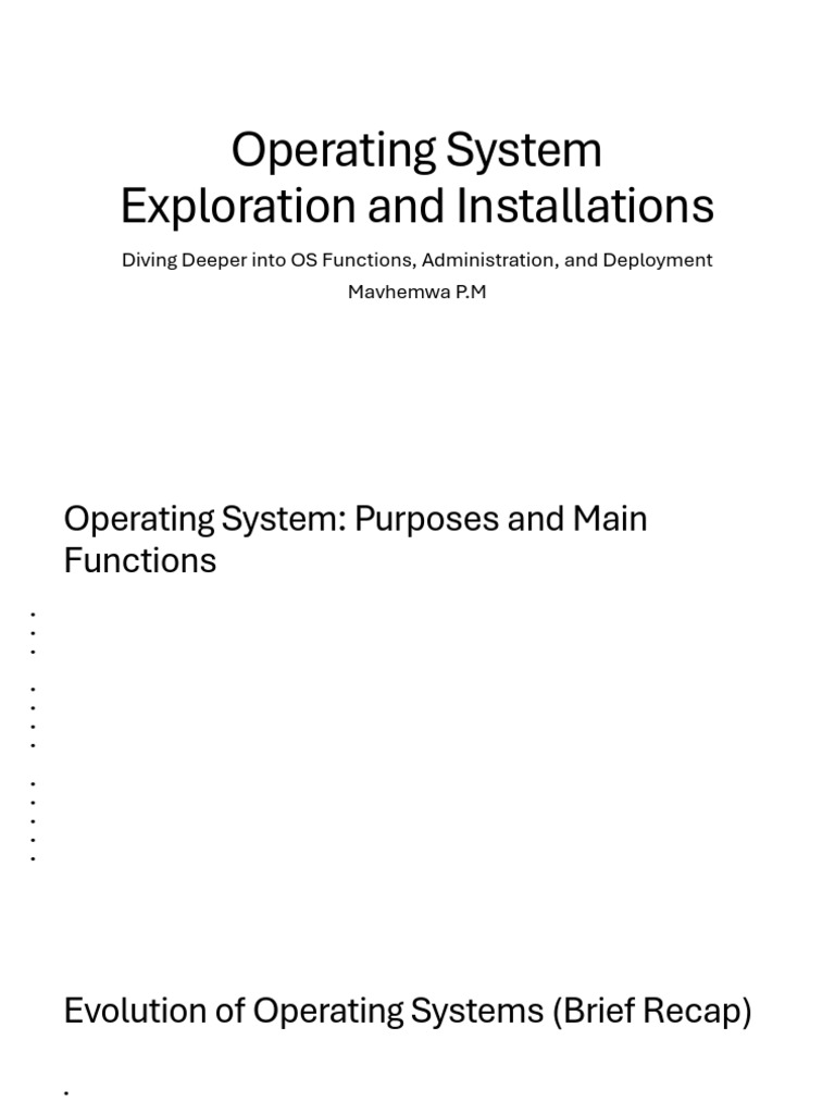 •No OS (Manual Operation): Early computers, direct hardware interaction.