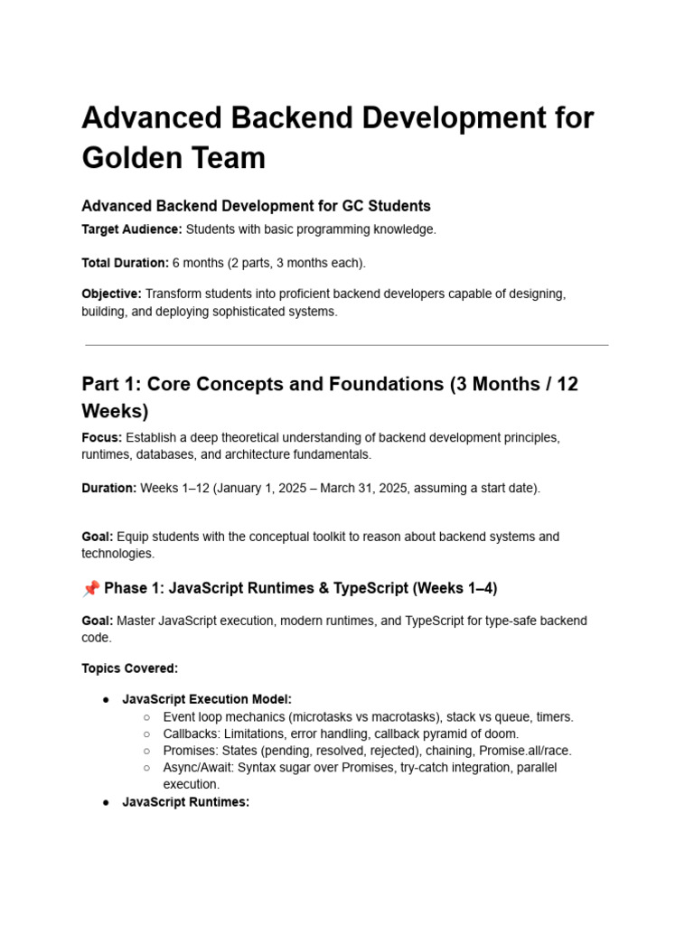 ● Part 1: Strong theoretical foundation in backend concepts, enabling critical thinking and