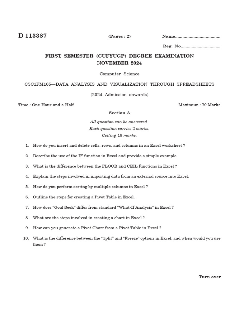FIRST SEMESTER (CUFYUGP) DEGREE EXAMINATION