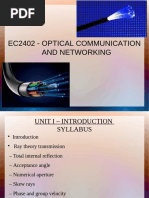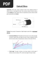 6. Discuss the construction of optical fiber and how the light rays propagate in an