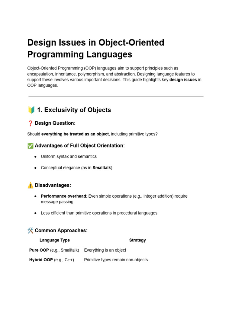 Hybrid OOP (e.g., C++) Primitive types remain non-objects